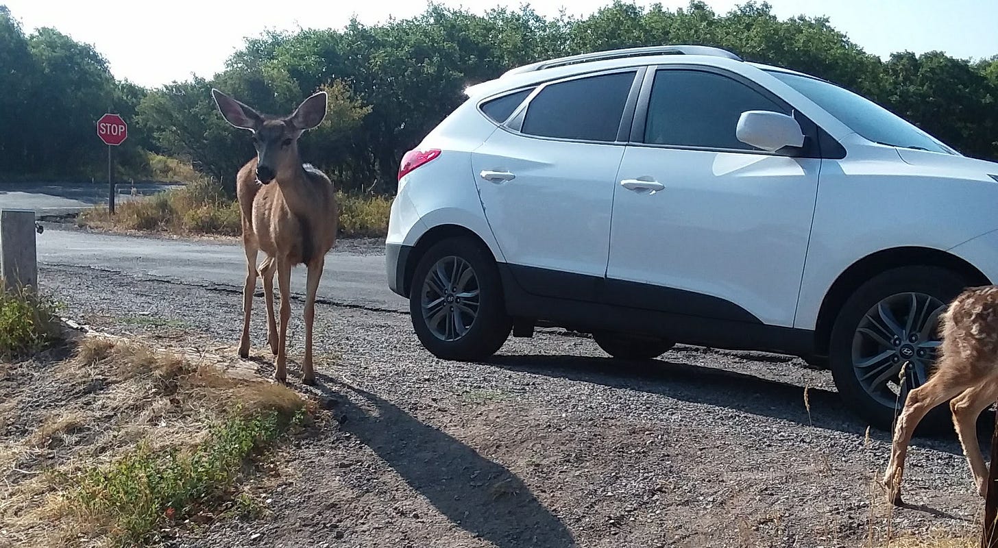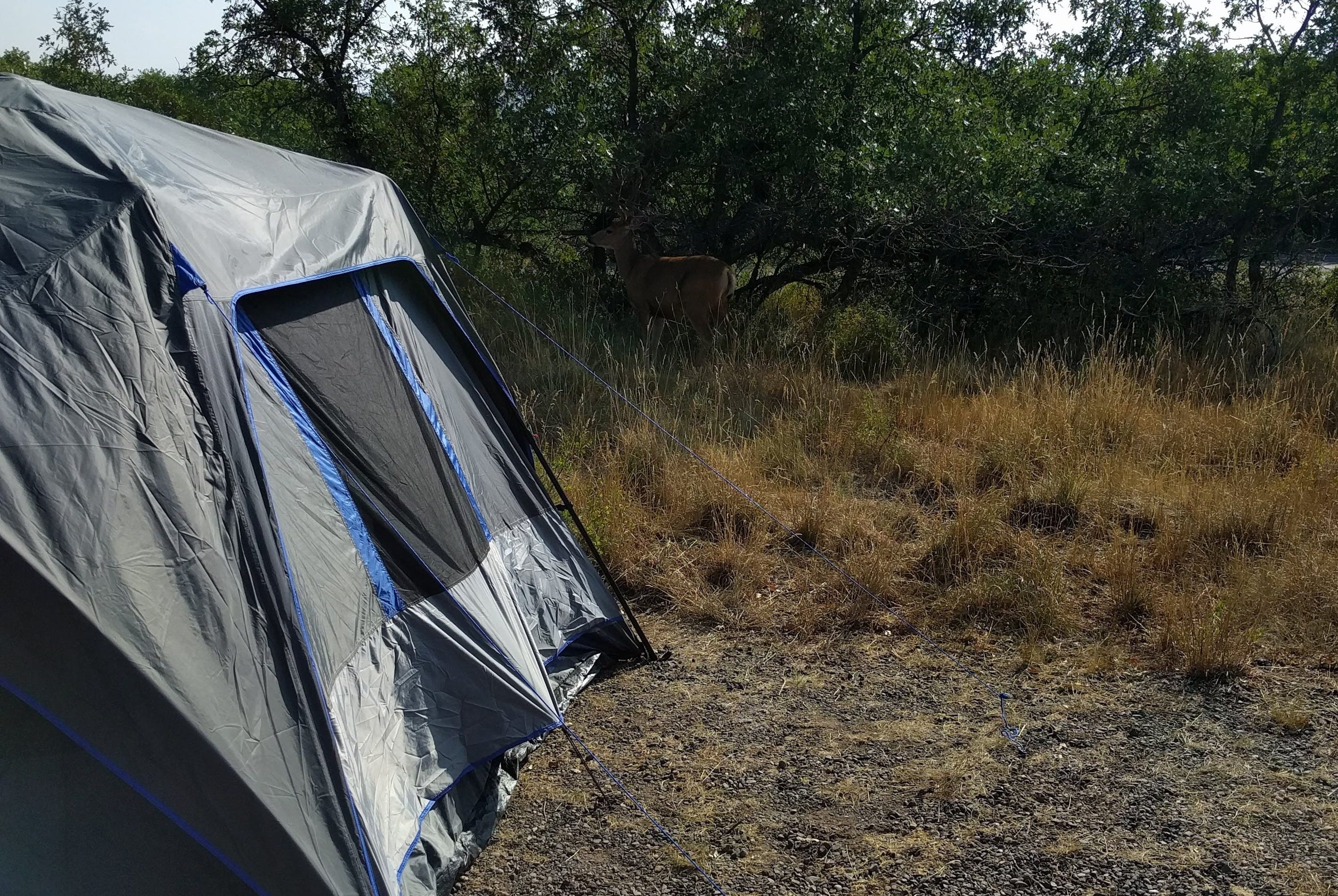 I barely slept a wink. A few hours into the night, I was tossing and turning as I heard what I thought was a ferocious bear ready to chew our heads off. So I did what any husband would do and stayed on alert, listening to every little noise that made its way through the thin tent walls, which was everything outdoors. When I dared to zip open the window on the tent in the morning, I looked outside to see a few harmless deer walking around eating leaves around our tent. Oops, might have overreacted.
